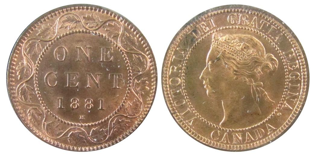 1881H 1¢ ICCS MS65RD. 95% red. Attractive issue.