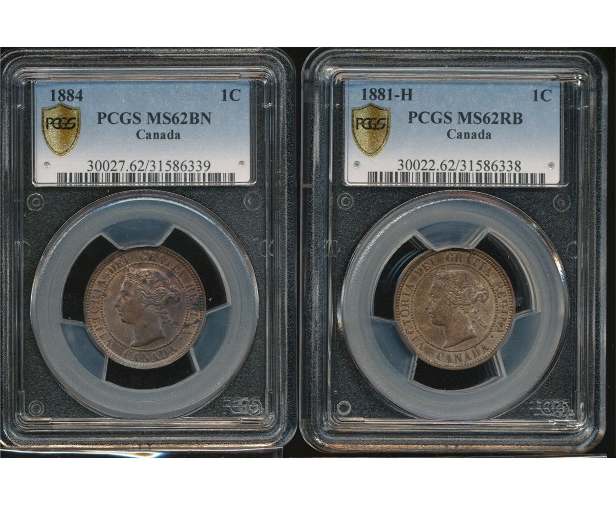 1881H 1¢ MS62RB & 1884 MS62BN. Lot of 2 coins both PCGS graded.