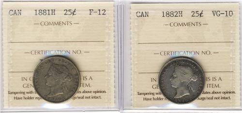 1881H, 1882H. Lot of two coins both ICCS graded w/no negative comments