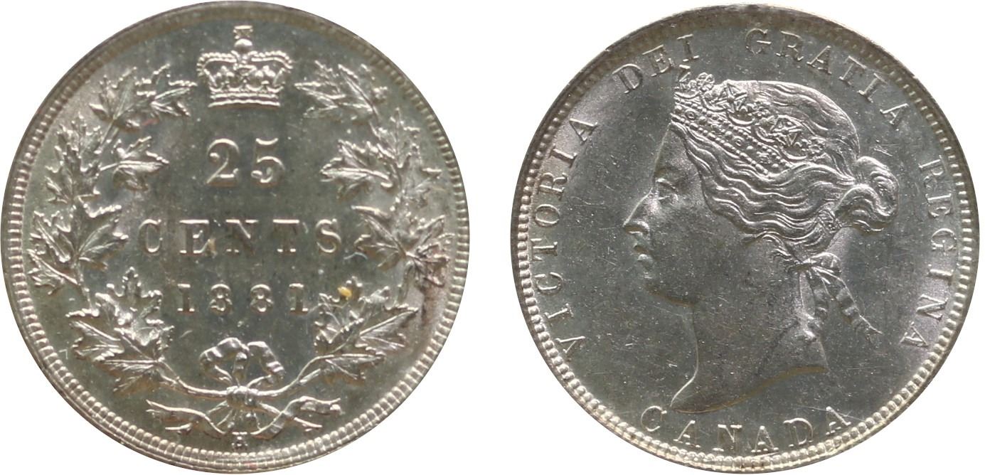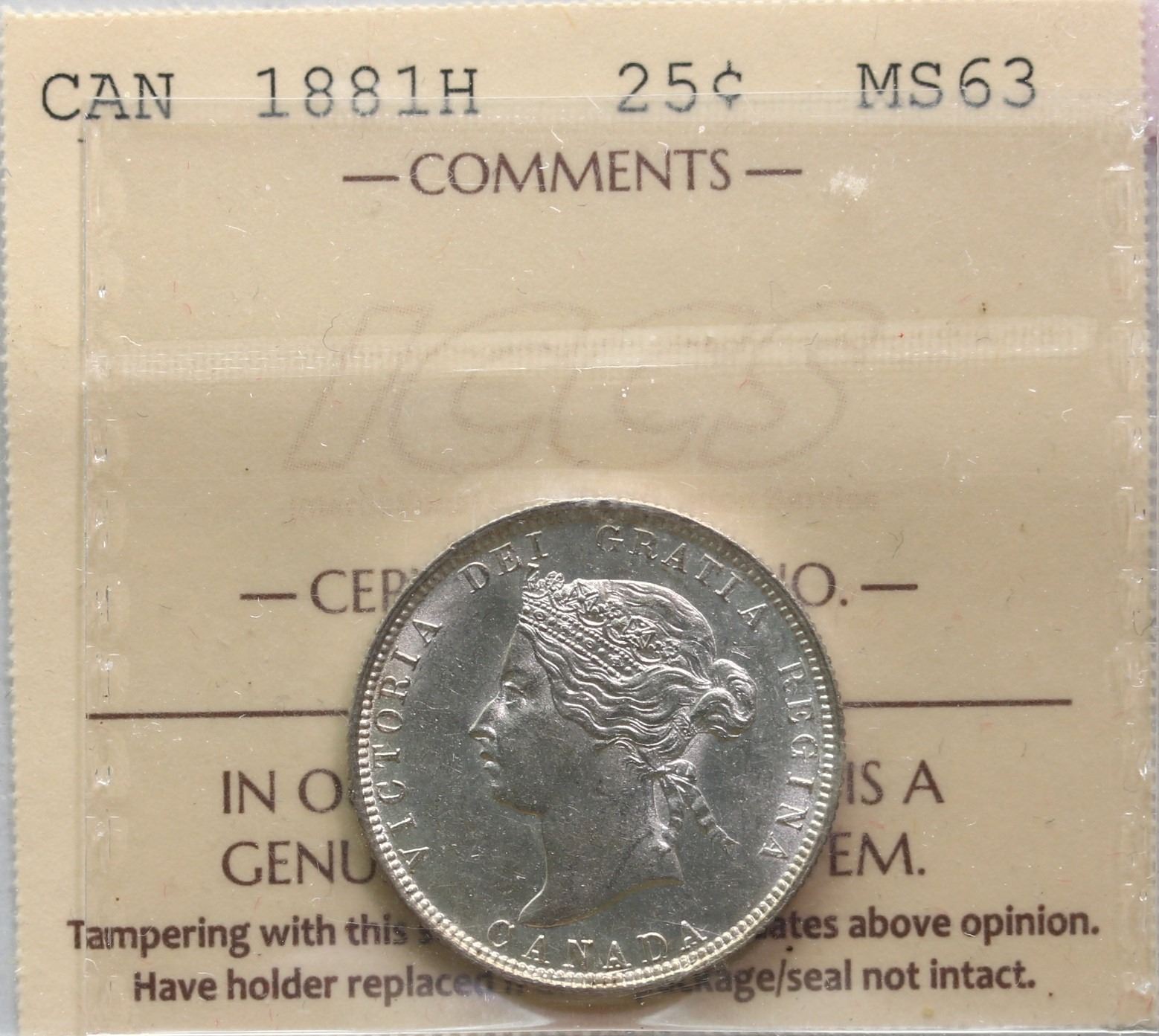 1881H 25¢ ICCS Choice Mint State-63 Fully brilliant and lustrous. Another nice Victorian example.