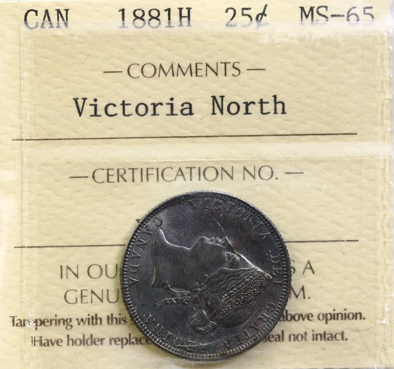 1881H 25¢ ICCS Gem Mint State-65. A superior example with nice eye appeal. Scarce this nice.