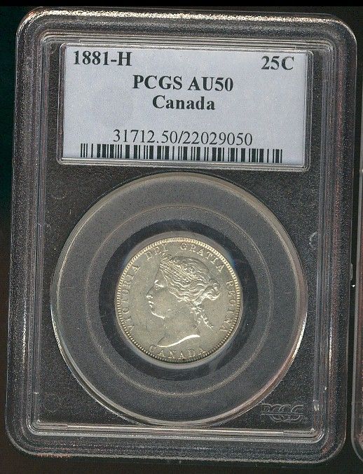 1881H 25¢ PCGS AU50. Lustrous issue.
