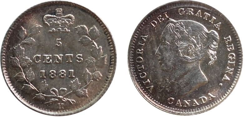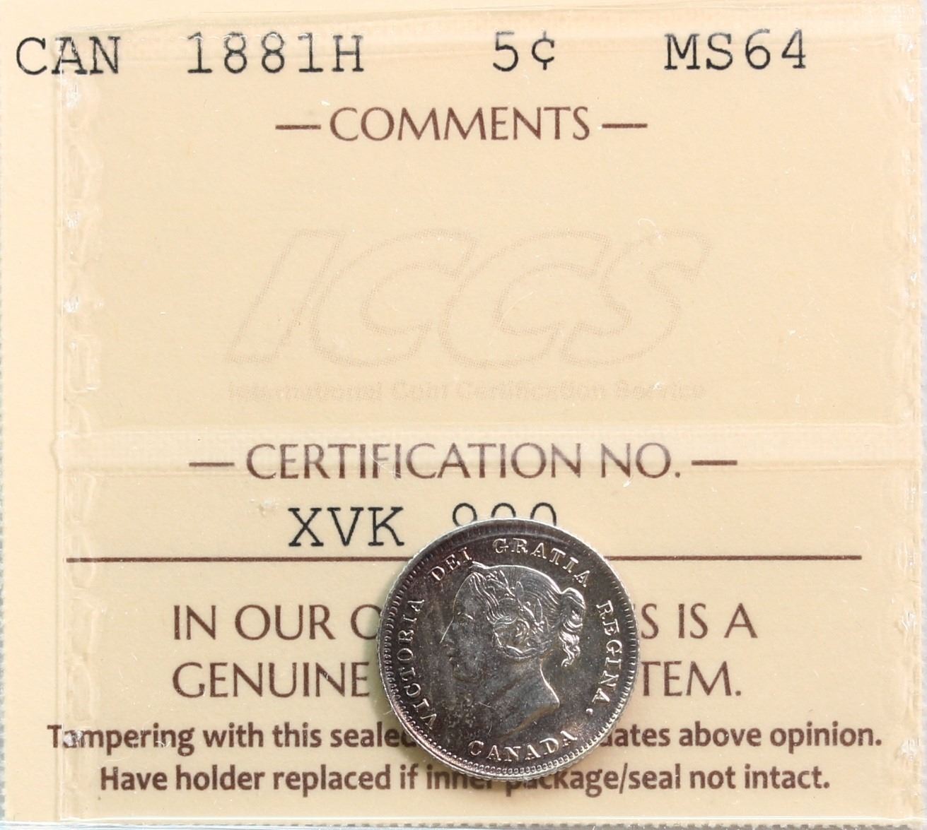 1881H 5¢ ICCS Choice Mint State-64 Delicate russet tone over full lustre. A nice and desirable example.