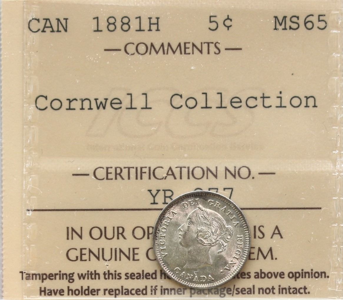 1881H 5¢ ICCS Gem Mint State-65. Fully brilliant and lustrous with just a hint of golden tone. Wow! Not often offered in this condition, a highly attractive and beautiful example to add to the best of collections.