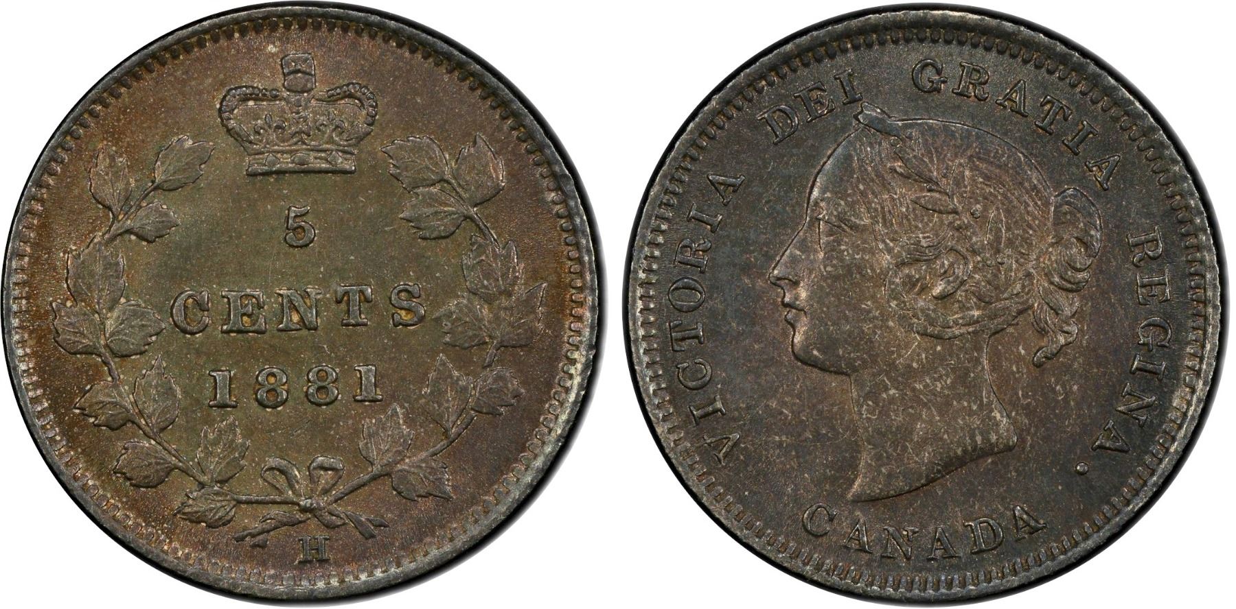 1881H 5¢ PCGS Choice Mint State-63. A superbly toned example displaying plenty of lustre under intense reddish tones.