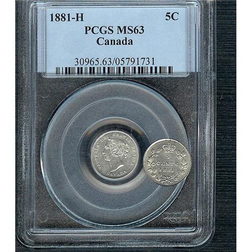1881H 5¢ PCGS MS63. Fully struck with full white luster.