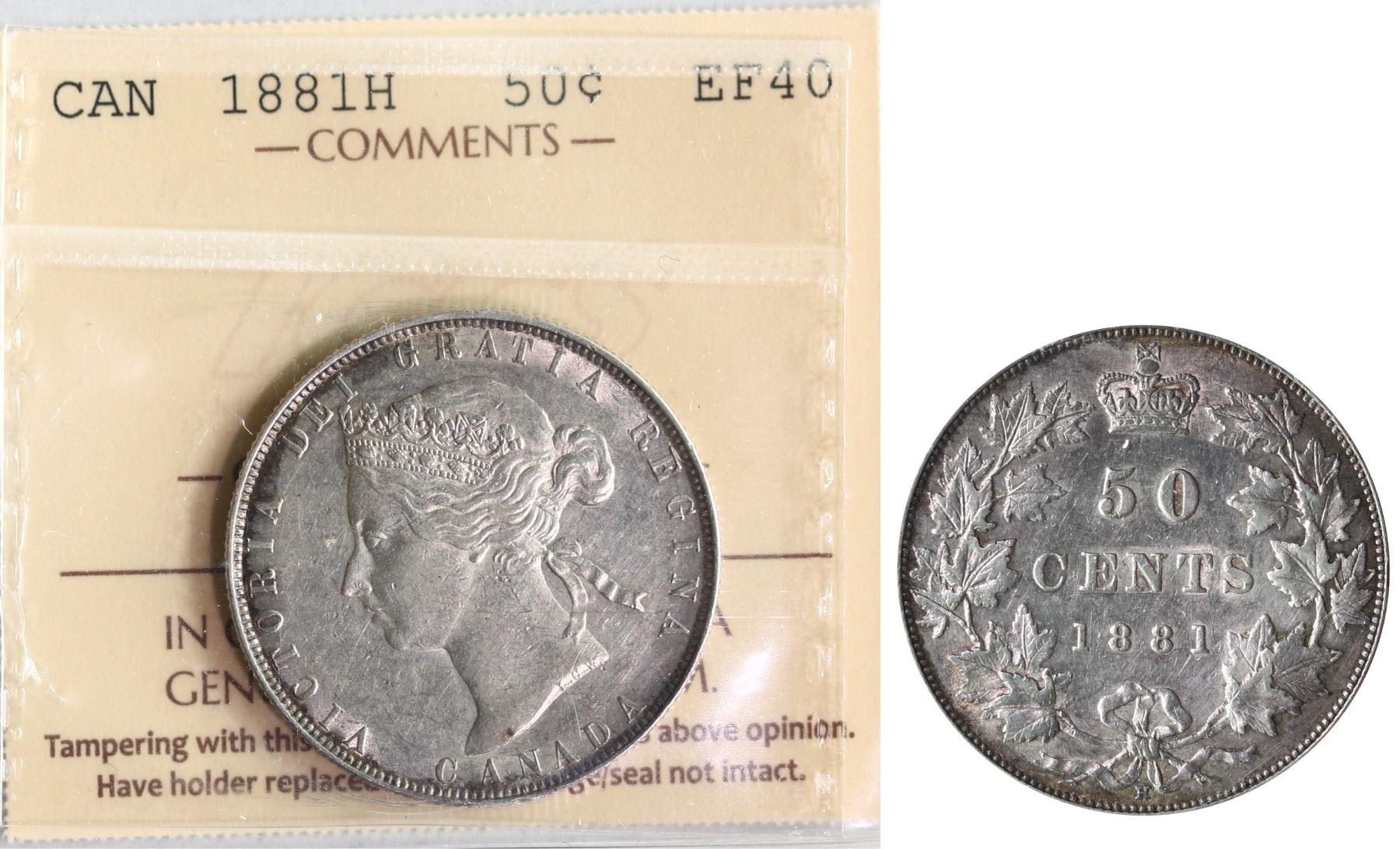 1881H 50¢ ICCS Extra Fine-40, Brilliant and lustrous. A very nice example.