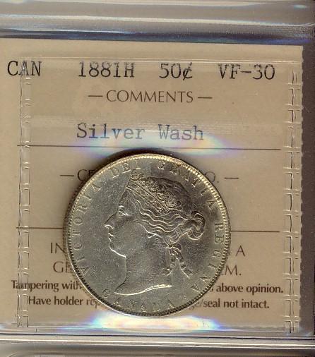 1881H 50¢ ICCS VF30 Silver Wash