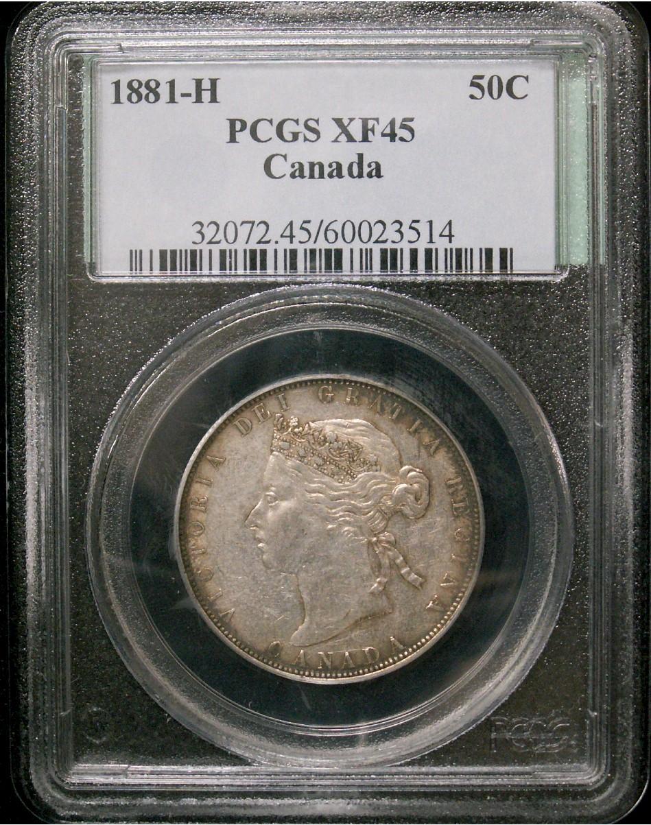1881H 50¢ PCGS EF45 Lightly toned with lots of luster. Excellent strike with clean fields.