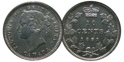 1881H Obv.2, 10¢, ICCS MS60,brilliant and lustrous.