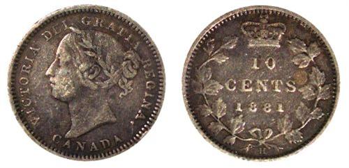 0157 - 1881H Obv.2 Canada Ten Cents-ICCS VF20