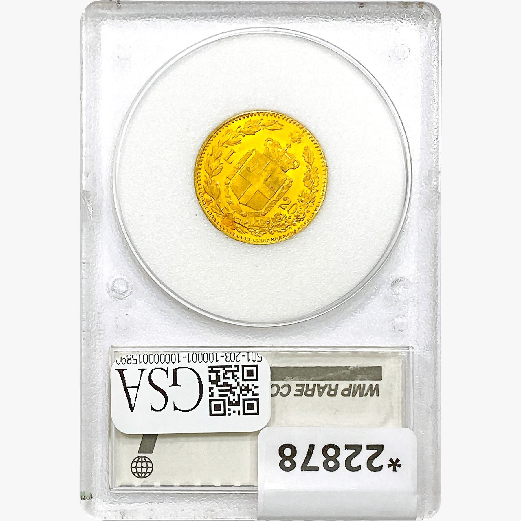 1882 0.187oz Gold Umberto 20 Lire WMP