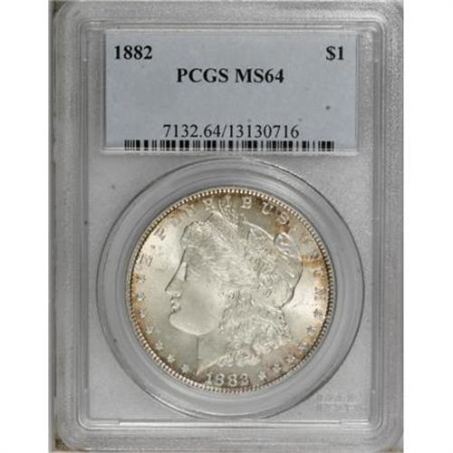<B>1882 $1 MS64 PCGS.</B></I> PCGS Population (3311/1106). NGC Census: (4454/1096). Mintage: 11,101,100. Numismedia Wsl. Price for NGC/PCGS coin in MS64: $58. (#7132)<BR><BR><b>Shipping:</b> Coins & Currency (<a target="_blank" href="http://www.heritageauctions.com/common/shipping.php">view shipping information</a>)