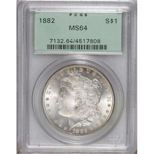 <B>1882 $1 MS64 PCGS.</B></I> PCGS Population (3311/1106). NGC Census: (4440/1088). Mintage: 11,101,100. Numismedia Wsl. Price for NGC/PCGS coin in MS64: $58. (#7132)<BR><BR><b>Shipping:</b> Coins & Currency (<a target="_blank" href="http://www.heritageauctions.com/common/shipping.php">view shipping information</a>)