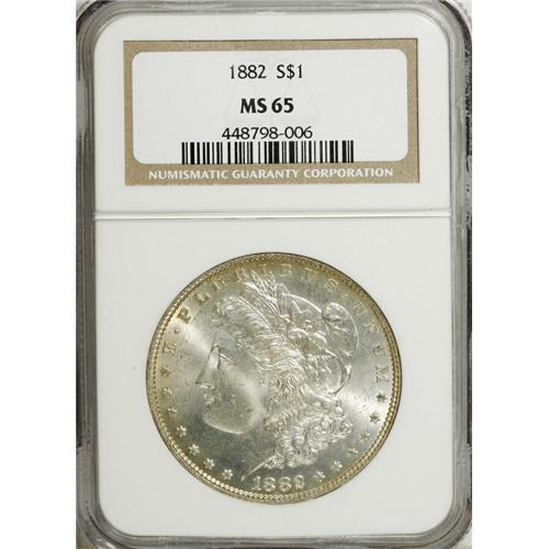 <B>1882 $1 MS65 NGC.</B></I> NGC Census: (902/160). PCGS Population (949/157). Mintage: 11,101,100. Numismedia Wsl. Price: $352. (#7132)<BR><BR><b>Shipping:</b> Coins & Currency (<a target="_blank" href="http://www.heritageauctions.com/common/shipping.php">view shipping information</a>)