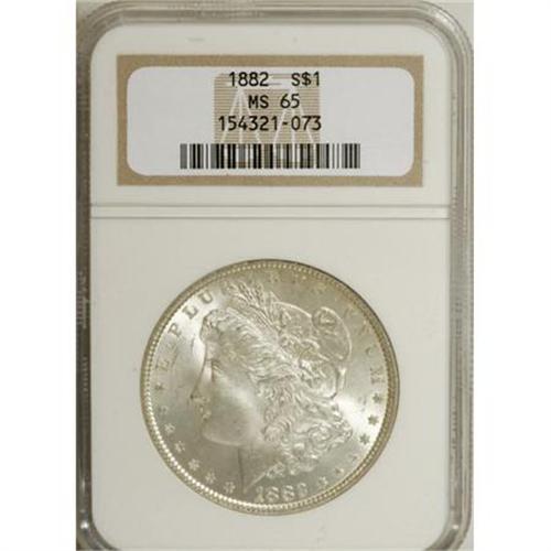 <B>1882 $1 MS65 NGC.</B></I> NGC Census: (930/165). PCGS Population (968/157). Mintage: 11,101,100. Numismedia Wsl. Price for NGC/PCGS coin in MS65: $348. (#7132)<BR><BR><B>Coin Engraver:</B> George T. Morgan<BR><BR><b>Shipping:</b> Coins & Currency (<a target="_blank" href="http://www.heritageauctions.com/common/shipping.php">view shipping information</a>)