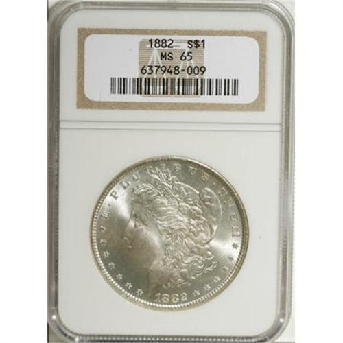 <B>1882 $1 MS65 NGC.</B></I> NGC Census: (937/165). PCGS Population (983/158). Mintage: 11,101,100. Numismedia Wsl. Price for NGC/PCGS coin in MS65: $365. (#7132)<BR><BR><B>Coin Engraver:</B> George T. Morgan<BR><BR><b>Shipping:</b> Coins & Currency (<a target="_blank" href="http://www.heritageauctions.com/common/shipping.php">view shipping information</a>)