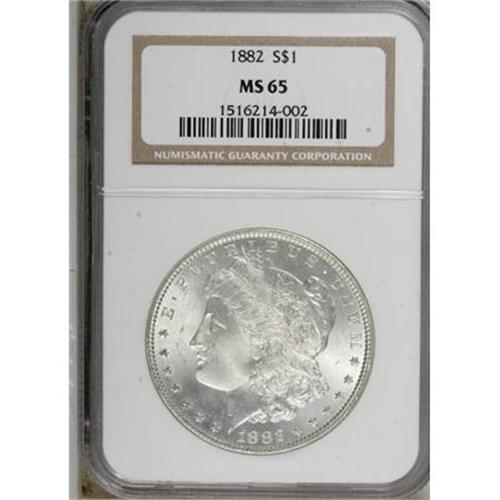 <B>1882 $1 MS65 NGC.</B></I> NGC Census: (976/169). PCGS Population (988/158). Mintage: 11,101,100. Numismedia Wsl. Price for NGC/PCGS coin in MS65: $365. (#7132)<BR><BR><B>Coin Engraver:</B> George T. Morgan<BR><BR><b>Shipping:</b> Coins & Currency (<a target="_blank" href="http://www.heritageauctions.com/common/shipping.php">view shipping information</a>)