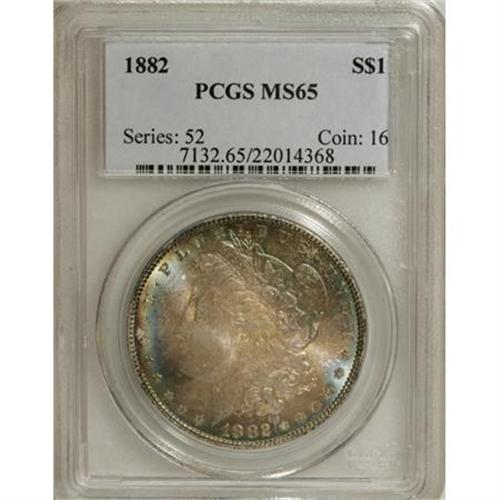 <B>1882 $1 MS65 PCGS.</B></I> PCGS Population (969/157). NGC Census: (932/165). Mintage: 11,101,100. Numismedia Wsl. Price for NGC/PCGS coin in MS65: $348. (#7132)<BR><BR><B>Coin Engraver:</B> George T. Morgan<BR><BR><b>Shipping:</b> Coins & Currency (<a target="_blank" href="http://www.heritageauctions.com/common/shipping.php">view shipping information</a>)