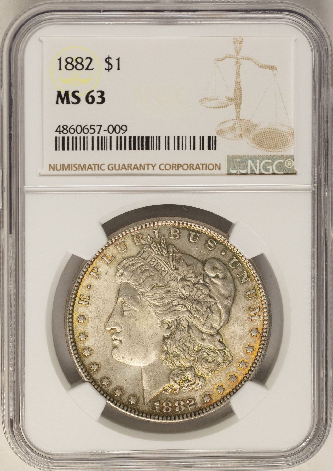 One 1882 $1 Morgan Silver Dollar Coin NGC MS63 Nice Toning.