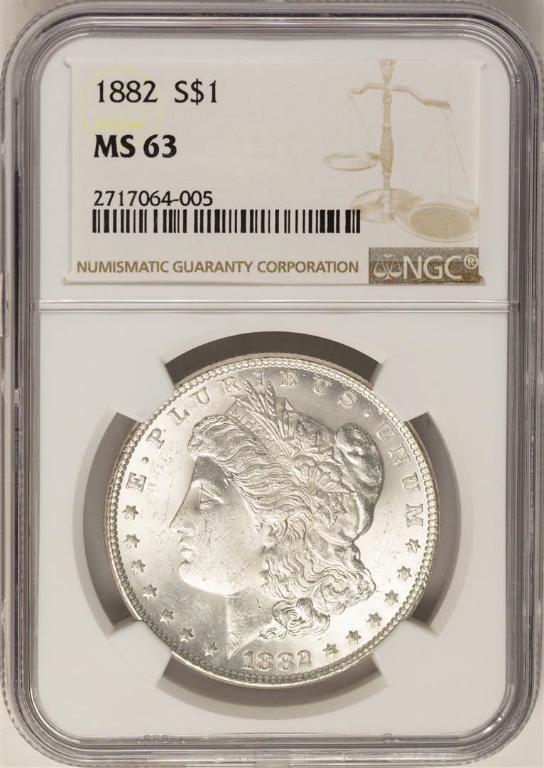 One 1882 $1 Morgan Silver Dollar Coin NGC MS63. NGC Certified.