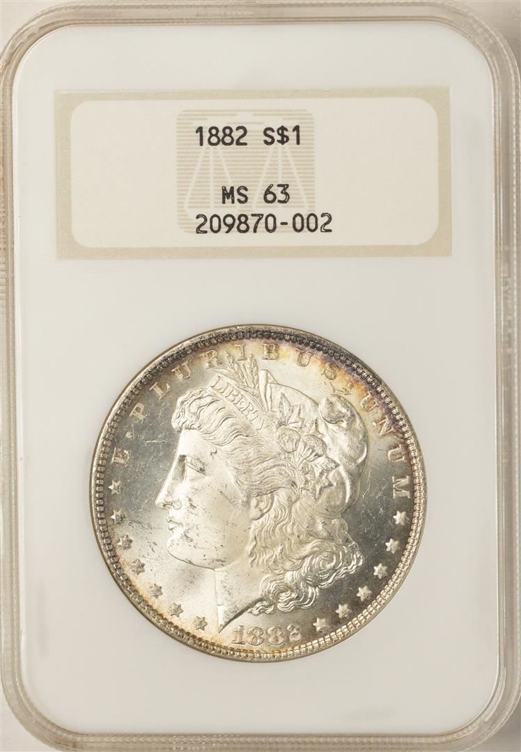One 1882 $1 Morgan Silver Dollar Coin NGC MS63. NGC Certified.