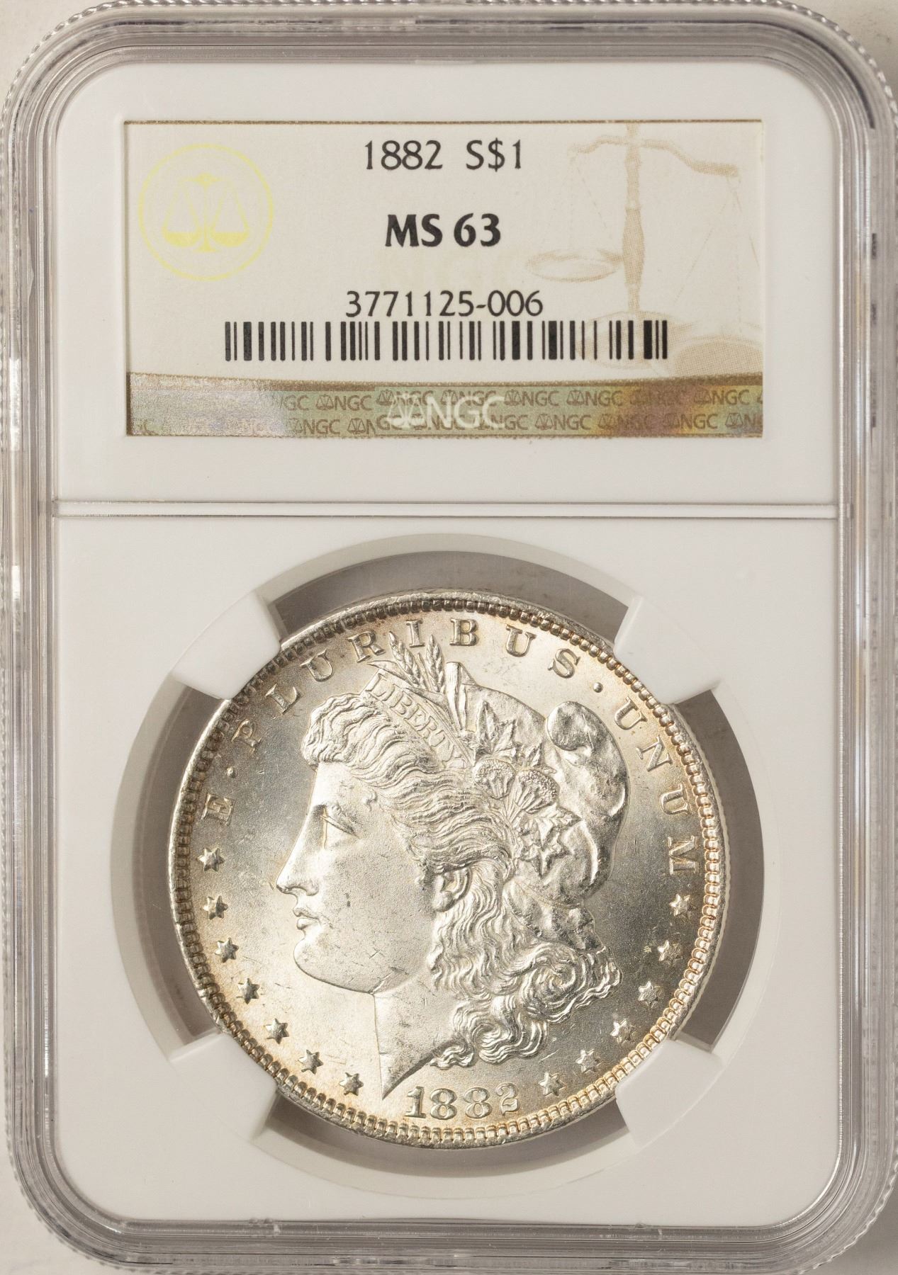 One 1882 $1 Morgan Silver Dollar Coin NGC MS63.