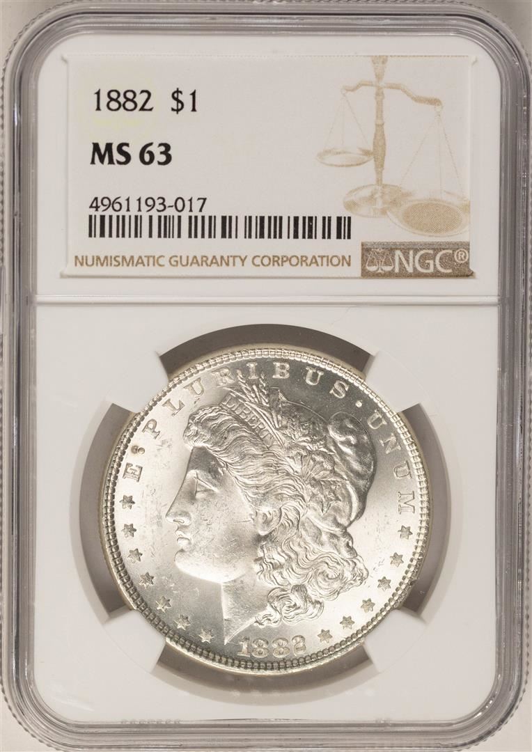 One 1882 $1 Morgan Silver Dollar Coin NGC MS63. NGC Certified.