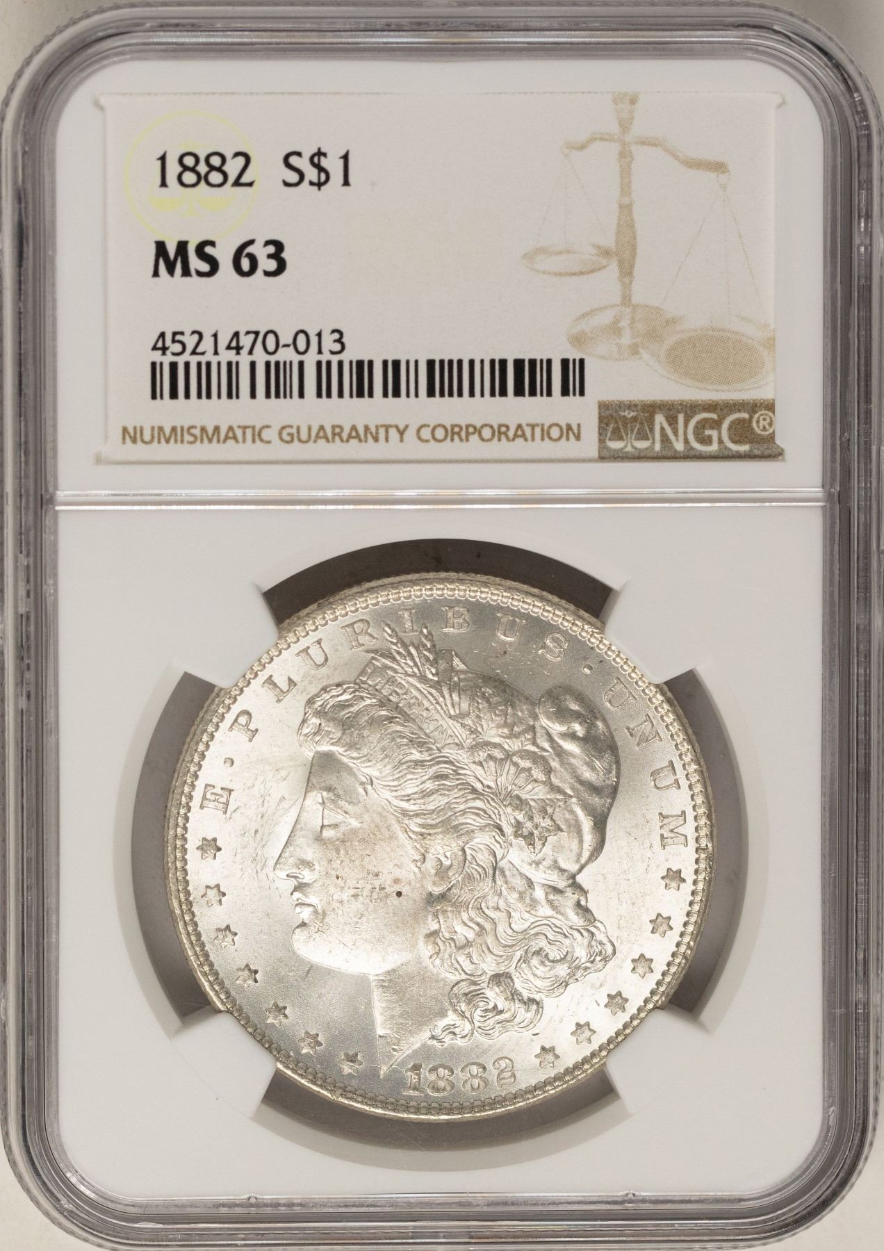One 1882 $1 Morgan Silver Dollar Coin NGC MS63.