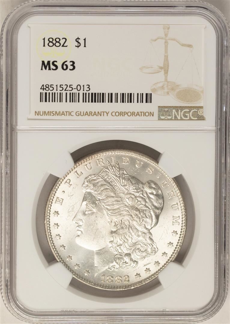 One 1882 $1 Morgan Silver Dollar Coin NGC MS63. NGC Certified.