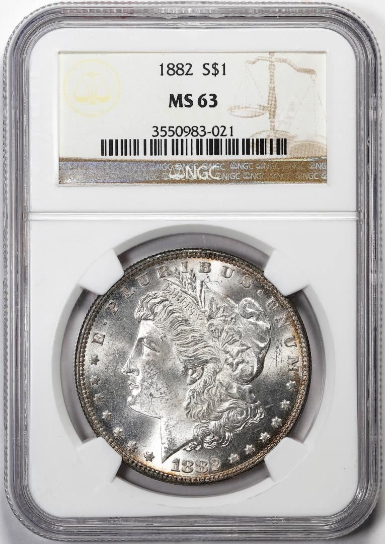 One 1882 $1 Morgan Silver Dollar Coin NGC MS63. NGC Certified.