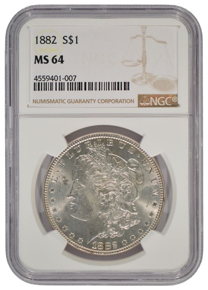One 1882 $1 Morgan Silver Dollar Coin NGC MS64.