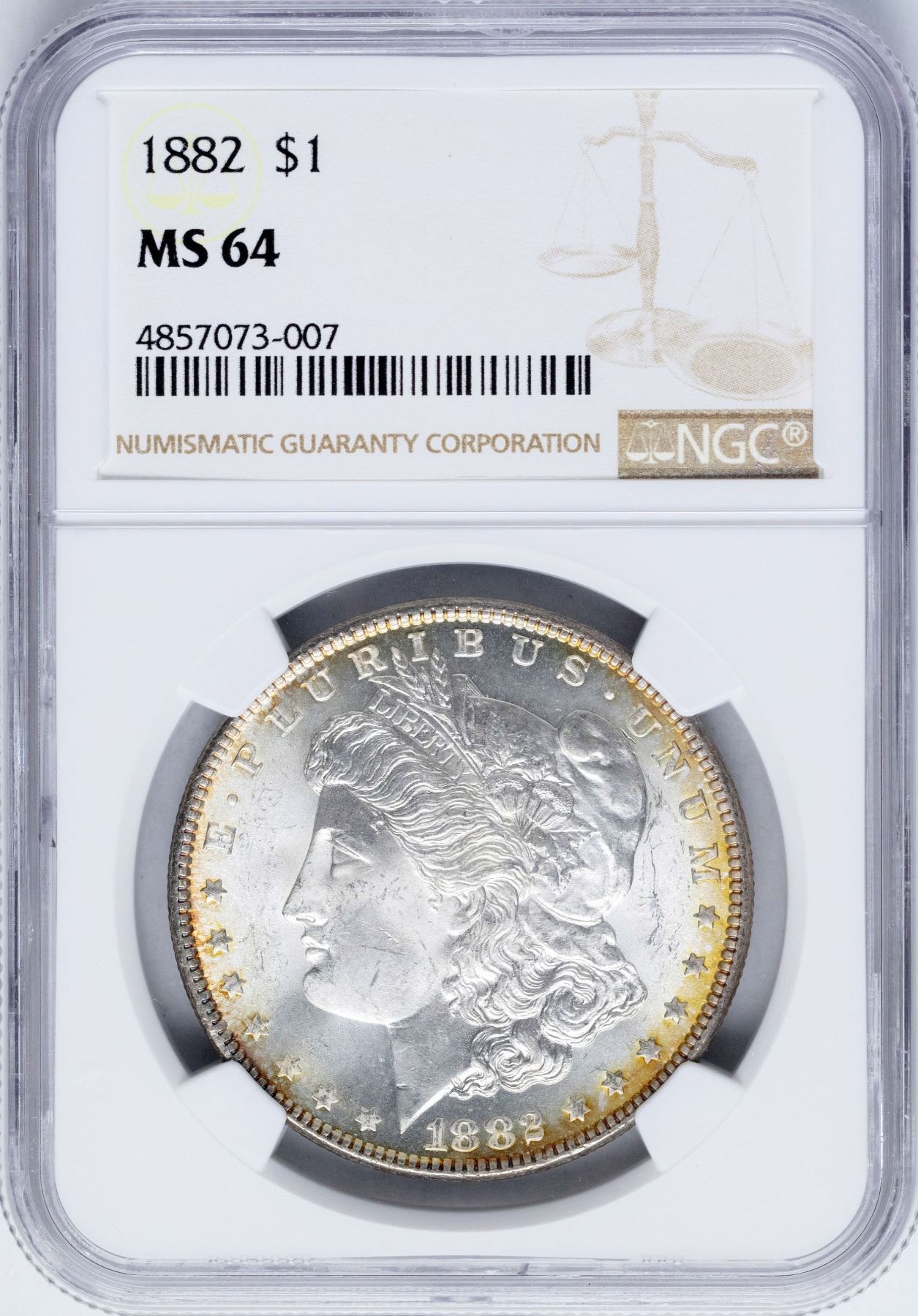One 1882 $1 Morgan Silver Dollar Coin NGC MS64.