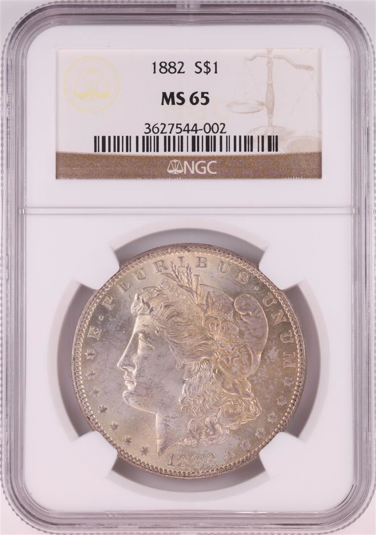 One 1882 $1 Morgan Silver Dollar Coin NGC MS65. NGC Certified.