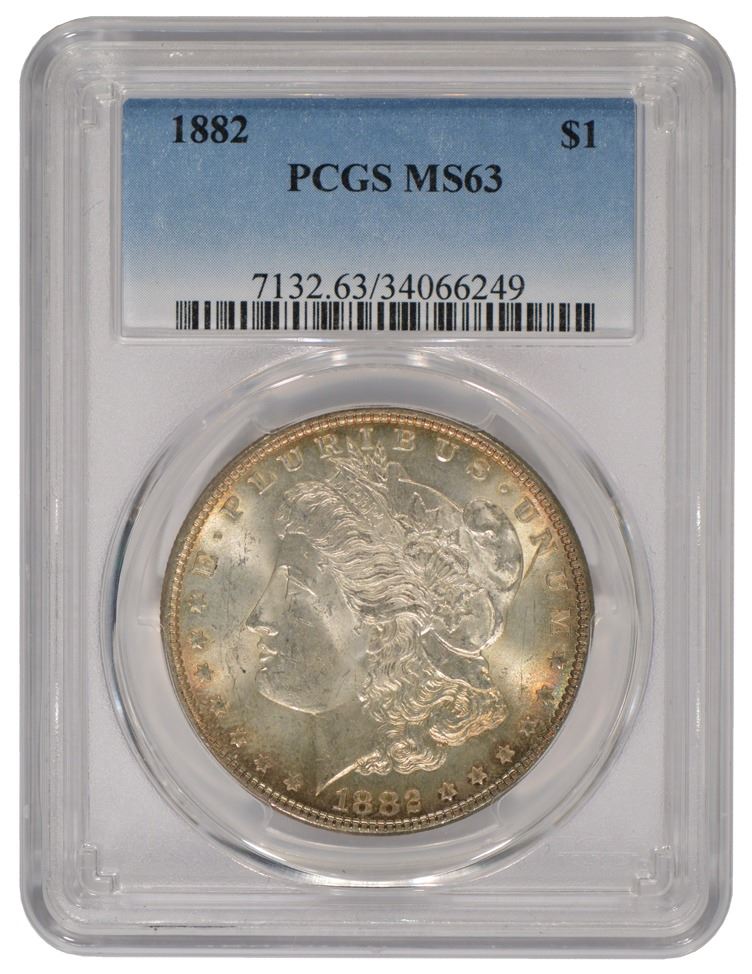 One 1882 $1 Morgan Silver Dollar Coin PCGS MS63.