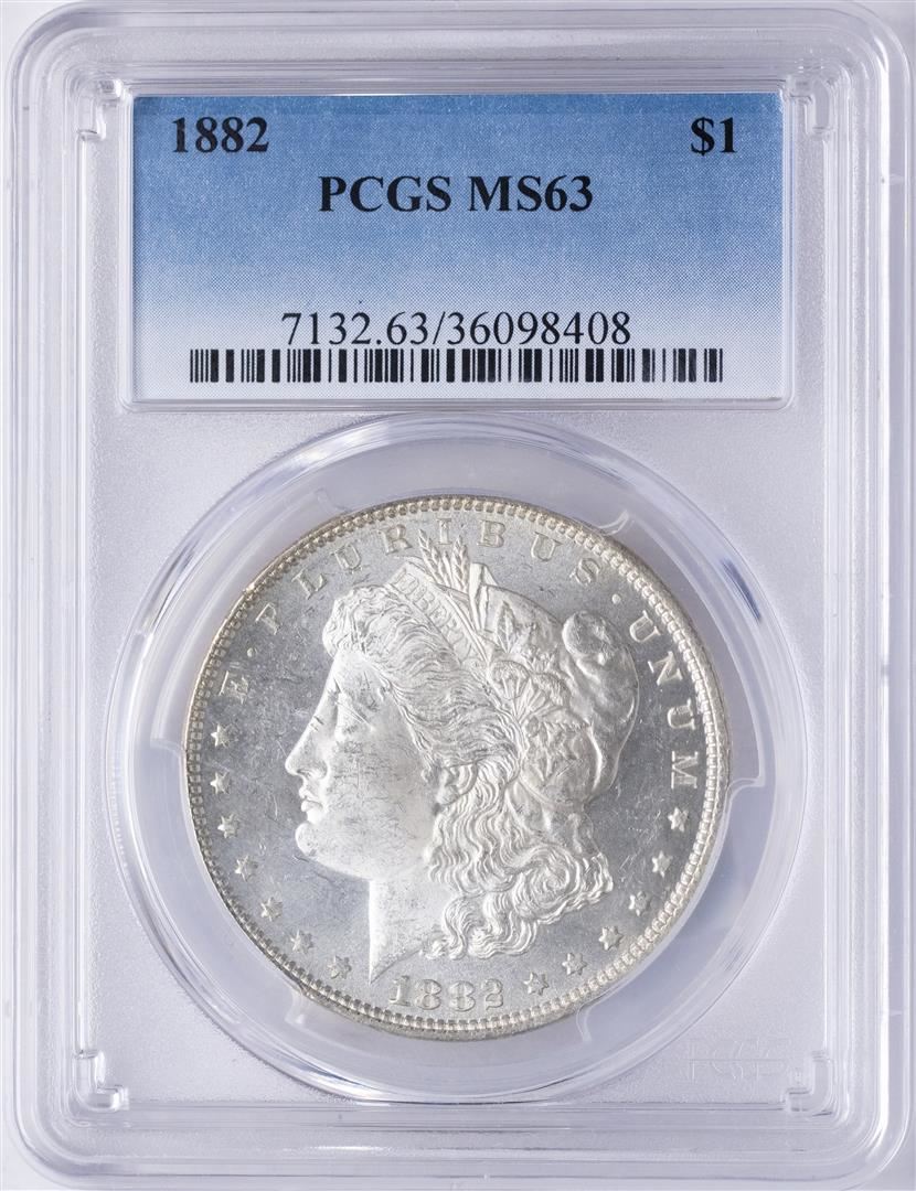 One 1882 $1 Morgan Silver Dollar Coin PCGS MS63. PCGS Graded.
