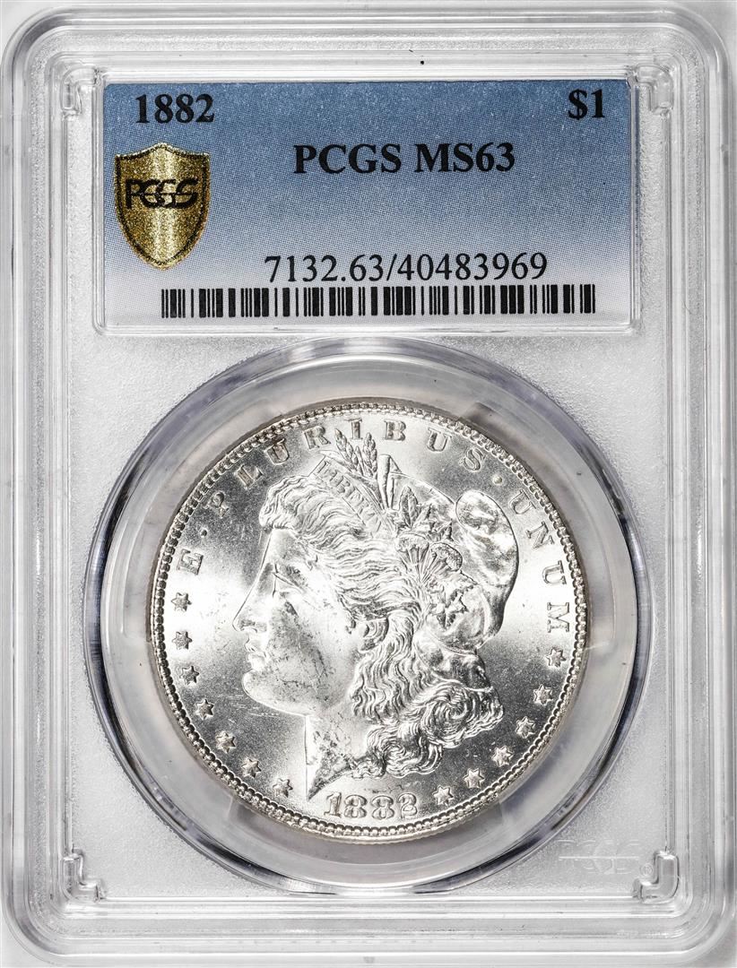 One 1882 $1 Morgan Silver Dollar Coin PCGS MS63. PCGS Graded.