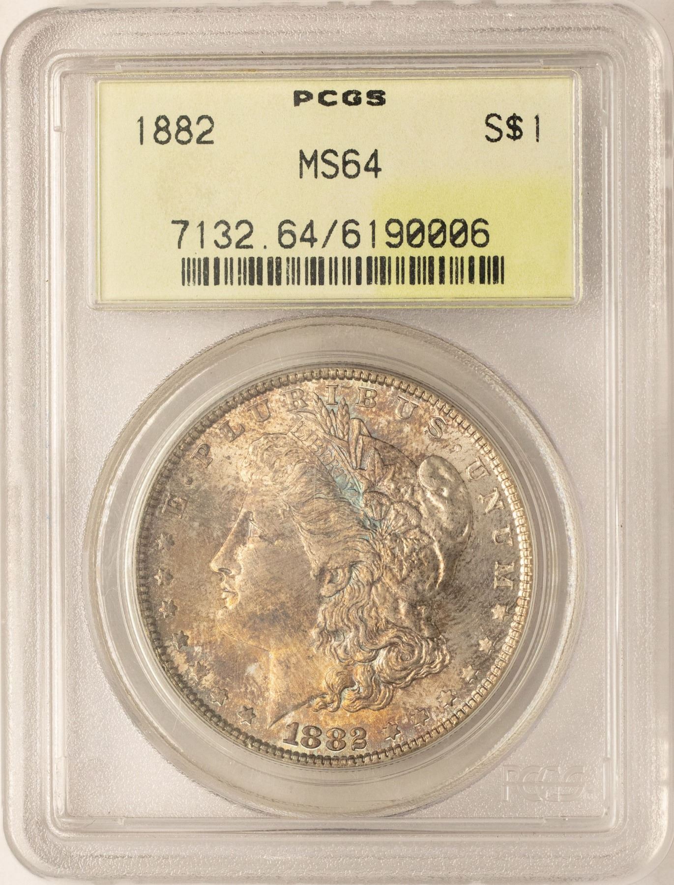 One 1882 $1 Morgan Silver Dollar Coin PCGS MS64 AMAZING TONING.