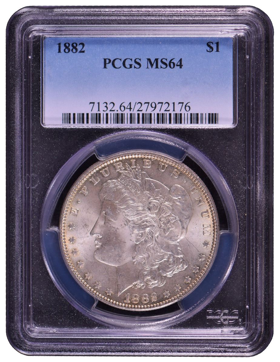 One 1882 $1 Morgan Silver Dollar Coin PCGS MS64.