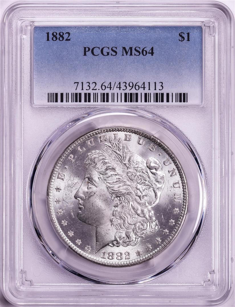 One 1882 $1 Morgan Silver Dollar Coin PCGS MS64. PCGS Graded.