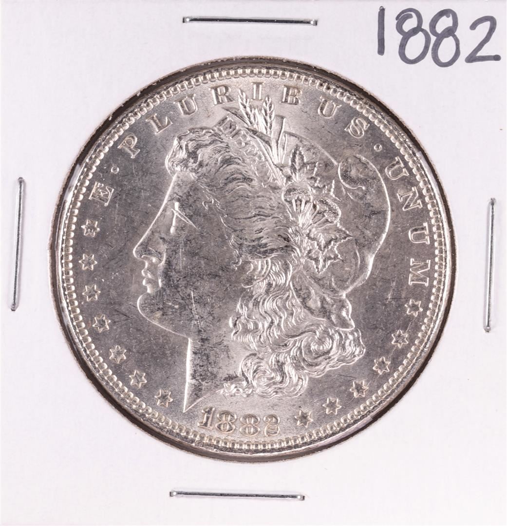One 1882 $1 Morgan Silver Dollar Coin.