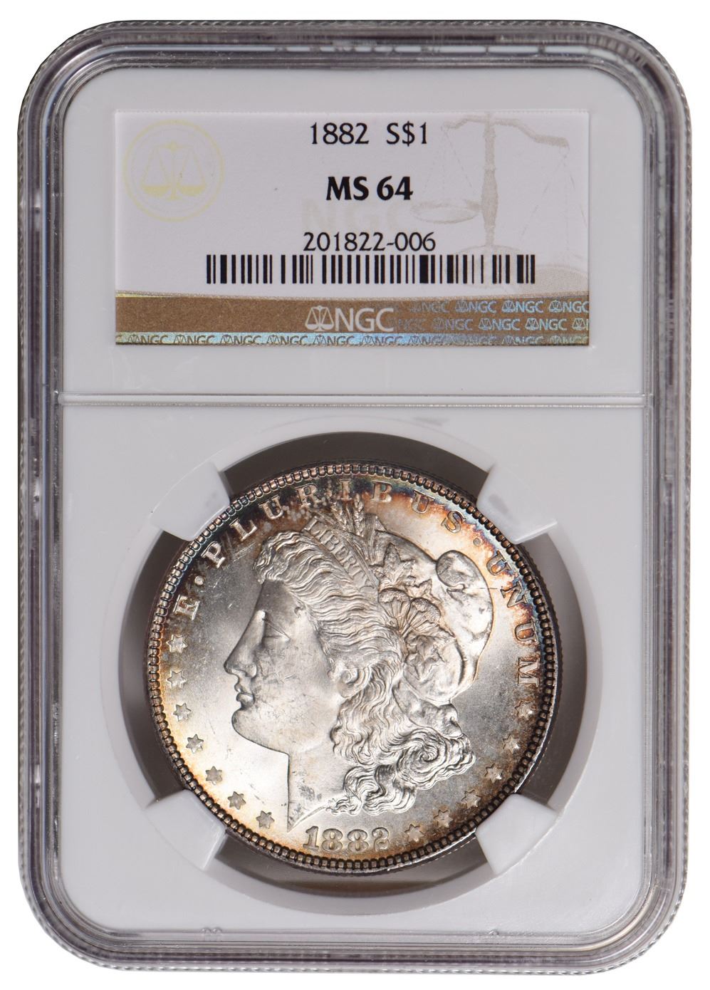 One 1882 $1 Morgan Silver Dollar NGC MS64.