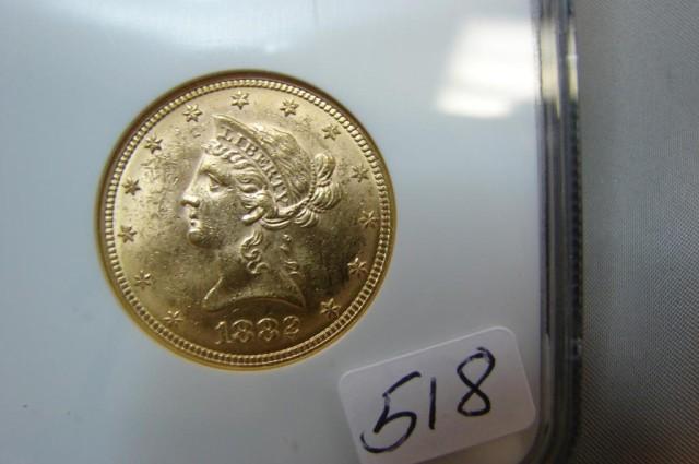 1882 $10.00 Liberty Head Gold Coin NGC MS61