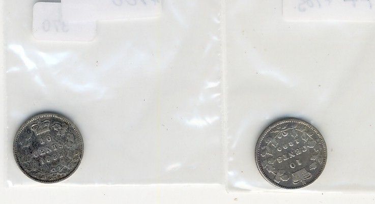 1882 10¢ & 1890H. Lot of 2 coins F+/VF.