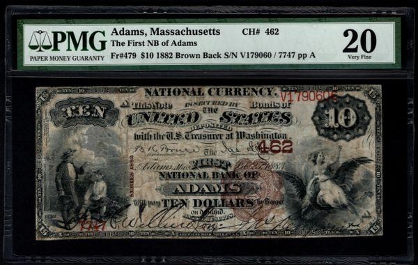 One 1882 $10 Adams National Bank Note PMG 20.