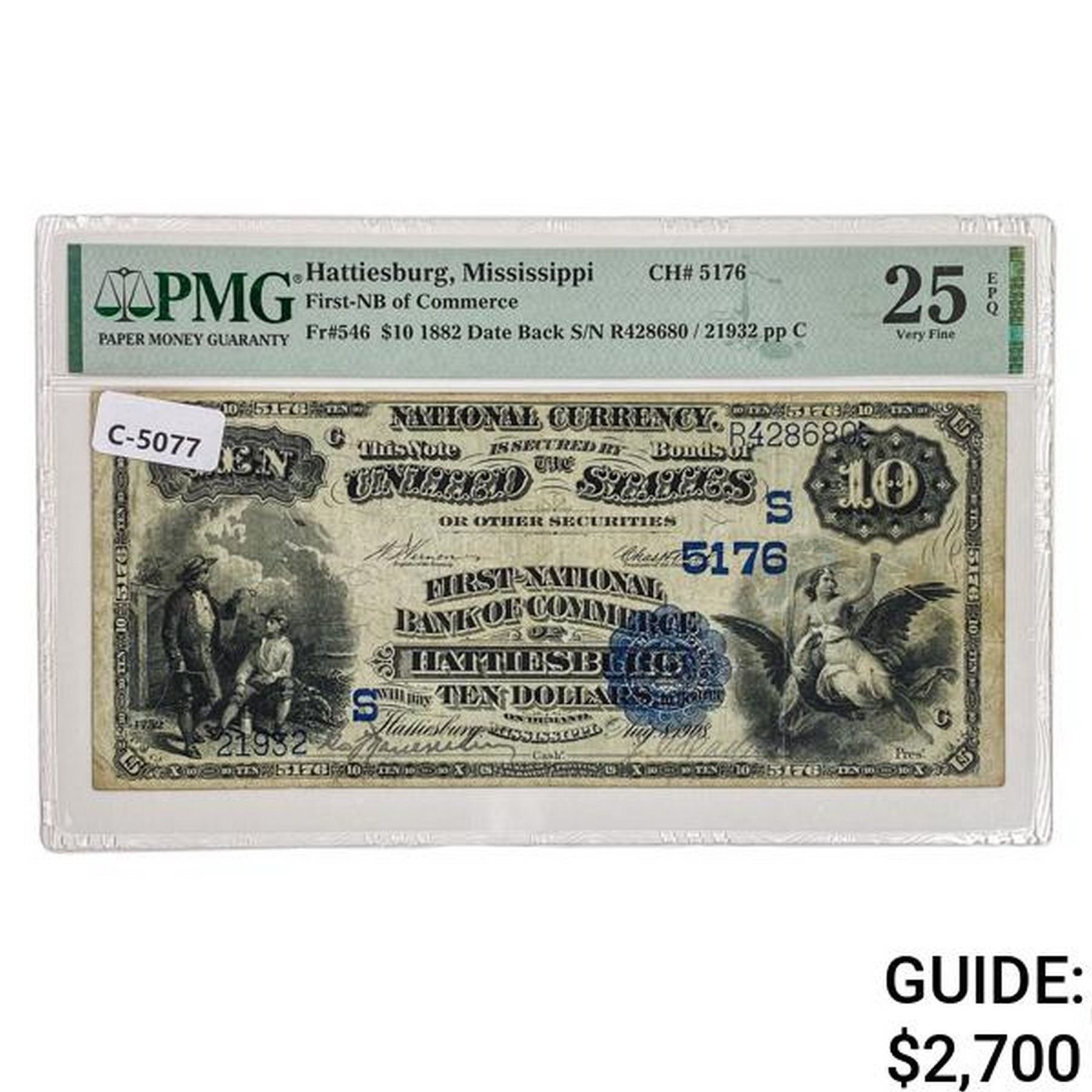 1882 $10 DB FIRST NATIONAL BANK OF COMMERCE HATTIESBURG, MS NATIONAL CURRENCY CH. #5176 PMG VERY FINE-25EPQ