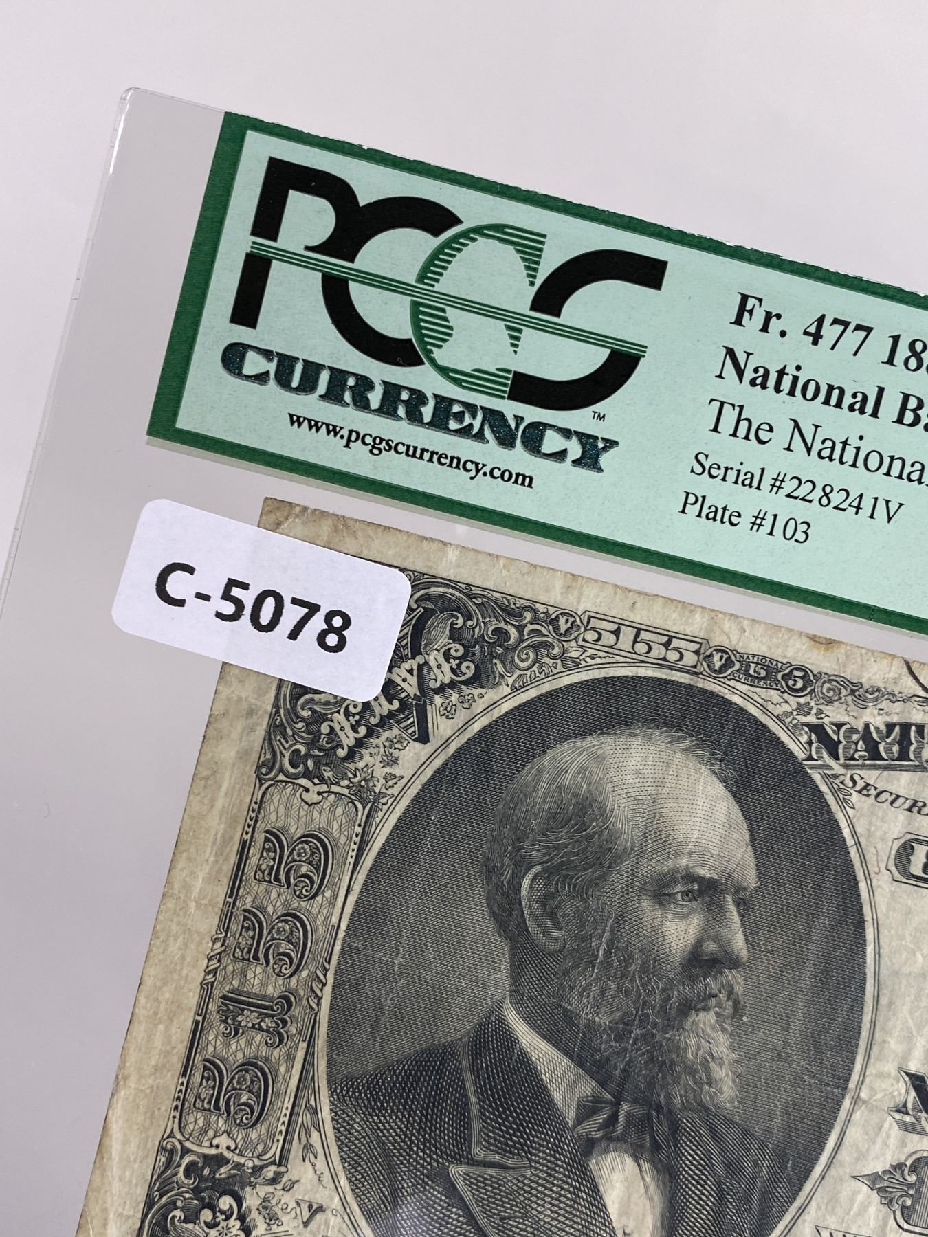 f. Notes sold referencing a third-party grading service are sold “AS IS” without any express or implied warranty, except for guarantee by GSA that they are genuine. Grading, condition or other attributes of any Product may have a material effect on its value and the opinion of others, including third-party grading services such as PCGS Currency and PMG may differ with that of GSA. GSA shall not be bound by any prior or subsequent opinion, determination, or certification by any grading service. Bidders specifically waive any claim to right of return of any Product because of the opinion, determination, or certification, or lack thereof, by any grading service. Certain warranties may be available from the grading services and Bidders are referred to them for further details: Paper Money Guaranty (PMG), PO Box 4711, Sarasota, FL 34230; PCGS Currency, PO Box 10470, Peoria, IL 61612-0470; PCGS Gold Shield, PO Box 9458, Newport Beach, CA 92658. Third-party graded notes are not returnable for any reason whatsoever.