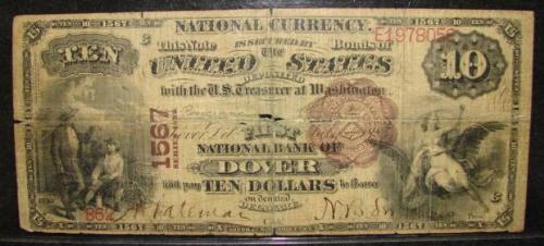 1882 $10 DELAWARE BANK NOTE. From the First National Bank of Dover.