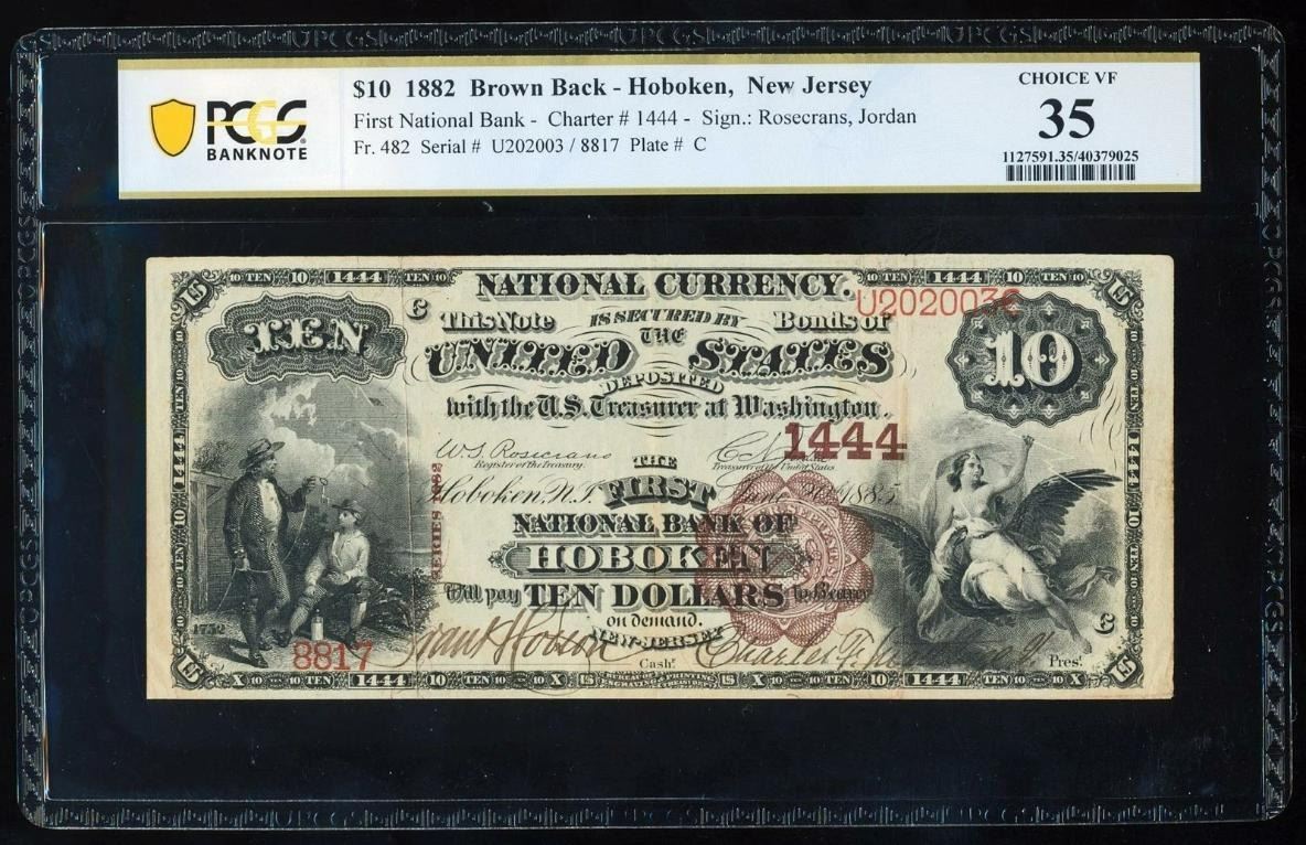 One 1882 $10 Hoboken NJ National PCGS 35.