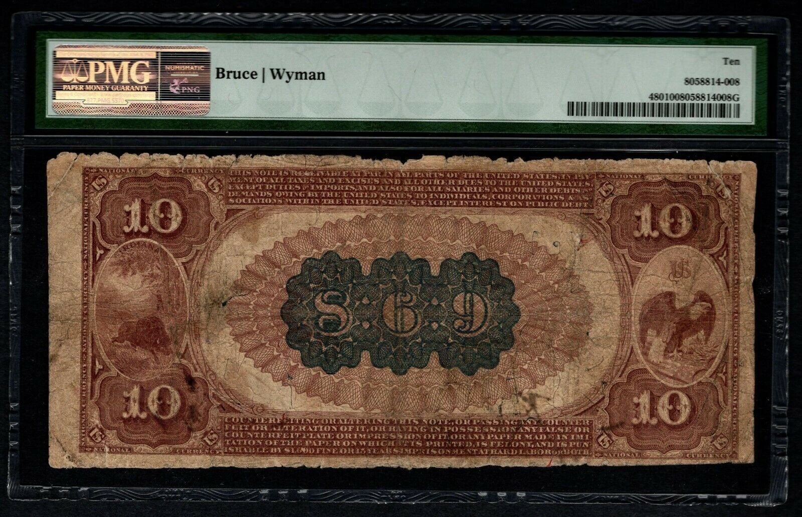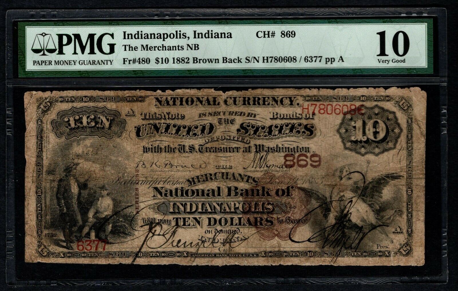 One 1882 $10 Indianapolis IN National PMG 10.